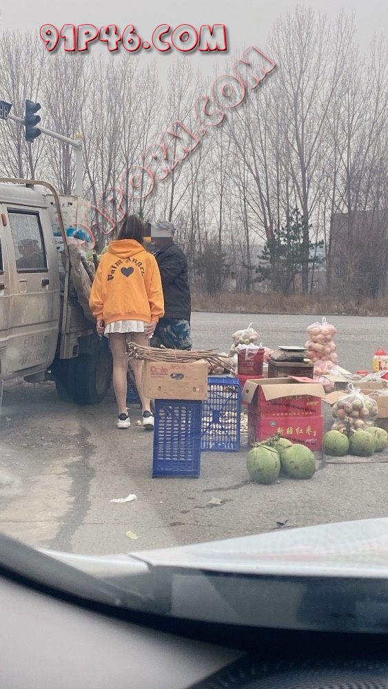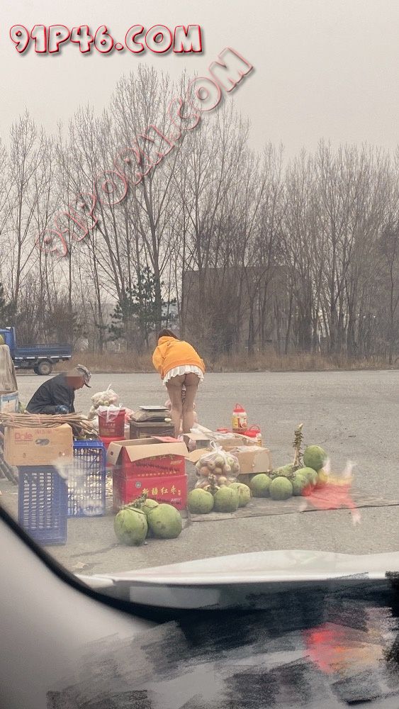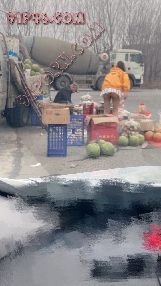 拍了一会比较晚了我们就回来了,到路上看到有卖水果的,之前看到有人发在地摊前露出挺刺激,就让骚妻下去买了点水果顺便露一下给过路的司机们看,