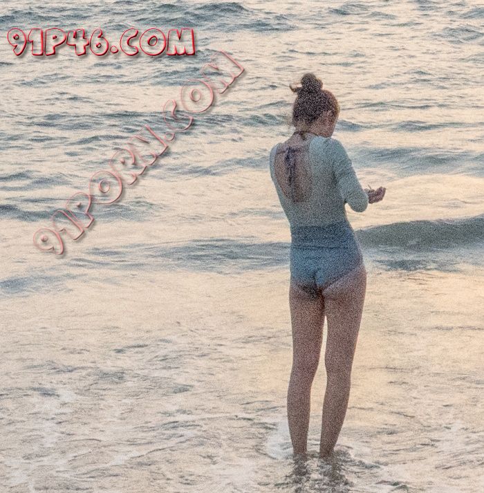 泳衣靠近逼的位置是湿的,也不知道是海水还是逼水